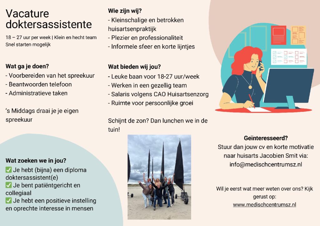 Ben jij een enthousiaste, ervaren doktersassistent(e) en beschikbaar voor ca. 6 maanden vanaf april 2026, lees dan vooral verder! Onze ...
